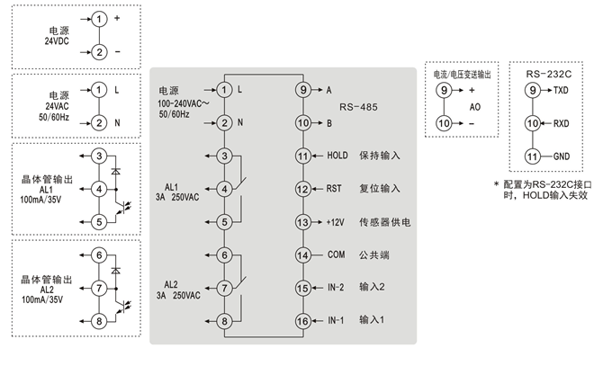 IN-1, IN-2, RST, HOLD 輸入類型: 無電壓觸點, 電壓脈沖, 集電極開路 輸入電壓: 高電平4~30VDC, 低電平0~1VDC 外部復位信號最小寬度: 20ms |