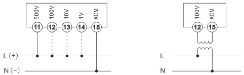 交(直)流電壓≤500V時(shí)直接接入 交流電壓>500V時(shí)經(jīng)互感器接入