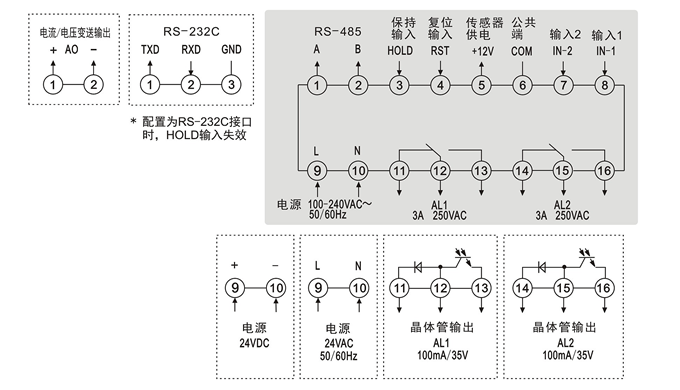 IN-1, IN-2, RST, HOLD 輸入類型: 無電壓觸點, 電壓脈沖, 集電極開路 輸入電壓: 高電平4~30VDC, 低電平0~1VDC 外部復位信號最小寬度: 20ms |